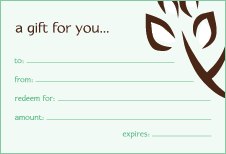 We are happy to mail your gift certificates to you directly or the person you are gifting.